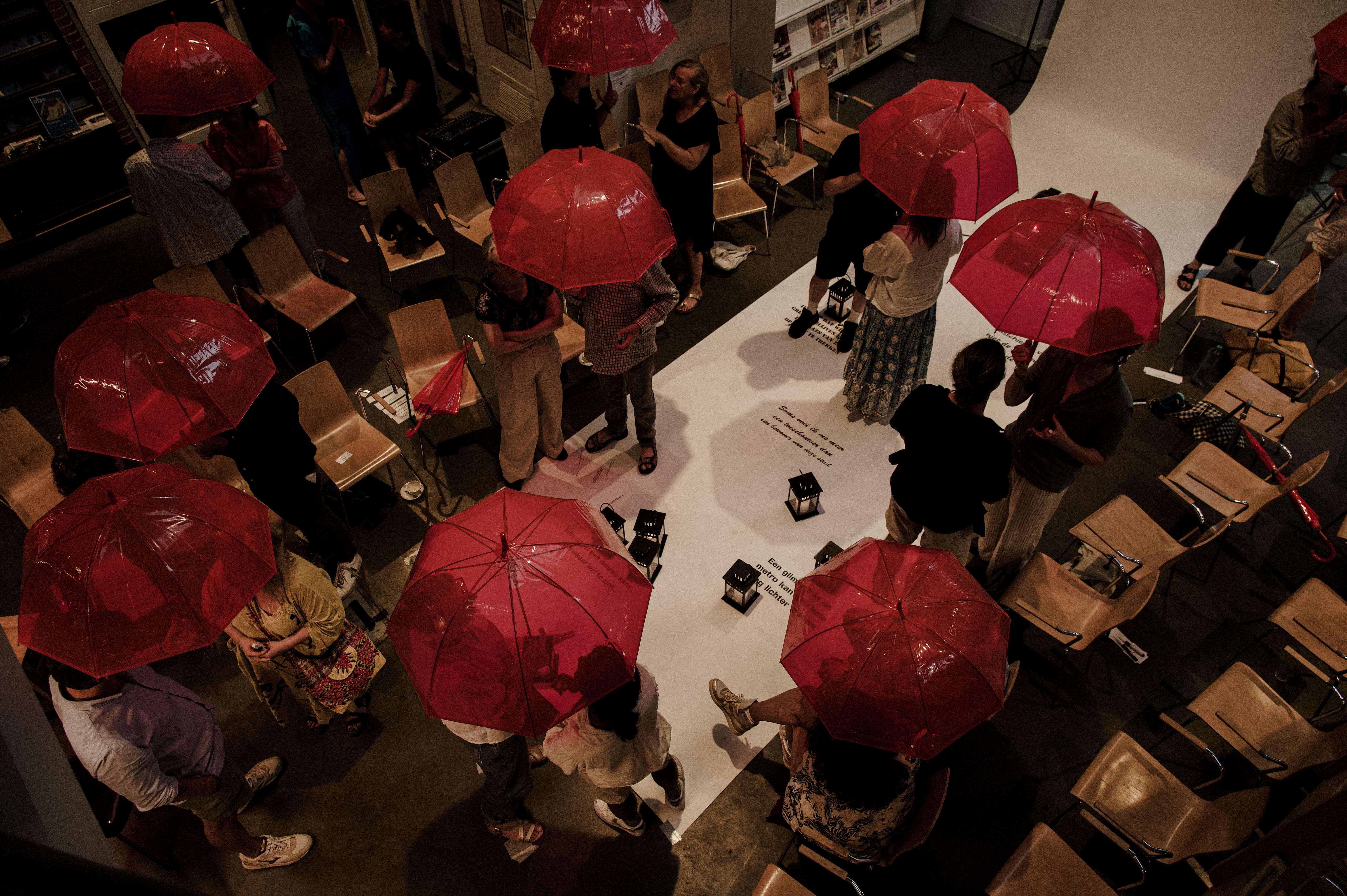 Loop binnen en laat je verrassen door het doorlopende programma. In de Grote hal zijn brieven van stadsgenoten te lezen en word je met interactieve opdrachten uitgedaagd zelf te schrijven. Volg de rode paraplu's en neem een kijkje bij het programma rond Vrouwen van West of stuur een kaartje aan Dak- en thuislozen in Oost.